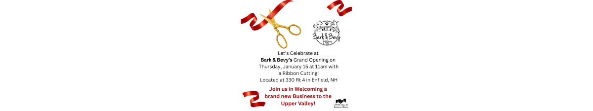 Join us for the Grand Opening of the Upper Valley's first indoor dog park & restaurant and bar, Bark & Bevy! We will celebrate with a Ribbon Cutting Ceremony at 11am on their opening day!